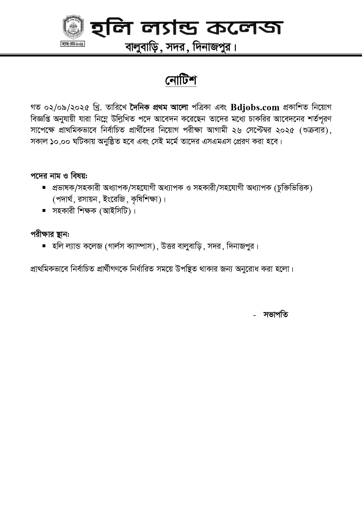 নিয়োগ বিজ্ঞপ্তি ২১.০৯.২০২৫